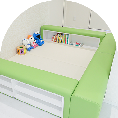 お子様連れのかたも通いやすいよう、院内にはキッズスペースの設置やバリアフリーを意識した設備を整えています。妊娠・出産・育児など、ライフステージが変わっても安心して通える医院を目指しています。